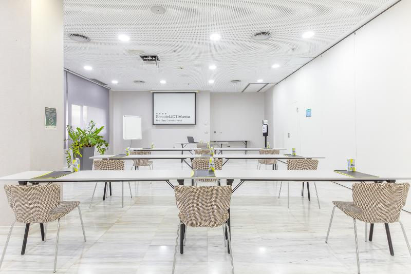Inaugurado en 2009, este moderno hotel se encuentra en el complejo empresarial JC1 de la capital de la región, justo al norte del centro de la ciudad. El hotel presume de una impresionante fachada de cristal y acero, y ofrece habitaciones luminosas, cómodas y amplias. Apreciarás las modernas salas de reuniones, la comodidad de las instalaciones y el acceso WIFI gratuito. El hotel también dispone de restaurante, cafetería y gimnasio. Puedes llegar al centro de Murcia en 5 minutos en tranvía, donde podrás visitar la catedral, el palacio episcopal, el auditorio, la Plaza de las Flores y el casco antiguo. La parada del tranvía está justo al lado del hotel. Es el alojamiento ideal tanto para viajeros de negocios como para turistas.
