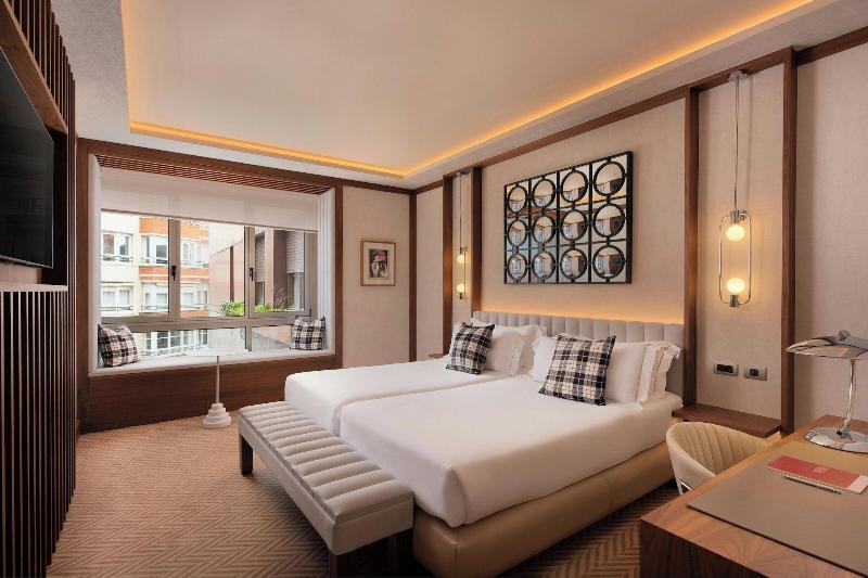 Este hotel de lujo está situado en una zona céntrica, en el distrito comercial de la ciudad y cerca del Museo Guggenheim. Enfrente del hotel tiene una parada de transporte público, con el que podrá llegar a todas las zonas de la ciudad sin ningún problema. El campo de golf más cercano está a 11 kilómetros y la playa a 12.Este elegante hotel, construido en el año 1973 y restaurado en el 2004, está ubicado en una calle principal y está compuesto por un edificio de 13 plantas y uno anexo de 8, sumando entre ambos un total de 333 habitaciones, 207 de ellas dobles y 9 suites. En el hall de entrada encontrará tres ascensores y una recepción abierta las 24 horas con servicio de caja fuerte, de guardarropa y de cambio de divisa. El hotel cuenta con una cafetería, tiendas, bar, discoteca y un restaurante a la carta climatizado. Podrá encontrar salas de conferencias equipadas con la más nueva tecnología, una sala de televisión y una terminal de Internet. Otras prestaciones del hotel son el servicio de habitaciones, de lavandería y de atención médica, así como el aparcamiento y el garaje (abonando tasas).Las confortables habitaciones están climatizadas y disponen de baño con secador de pelo, teléfono de línea directa, TV vía satélite o por cable, radio, equipo de música, conexión a Internet, minibar y cama doble.A disposición de los huéspedes hay una zona de cuidado corporal con jacuzzi, baño turco y gimnasio. Para los huéspedes, la utilización de estas instalaciones es gratuita.En coche, por autopista, ir a la salida OESTE (Plaza Sagrado Corazón), seguir por la calle Gran Vía Diego López de Haro hasta el 4º cruce. Tomar hacia la derecha (calle Maximo Aguirre) hasta el final, donde se encuentra el hotel. Dispone de garaje propio.