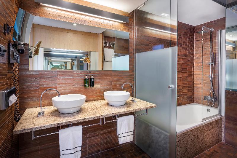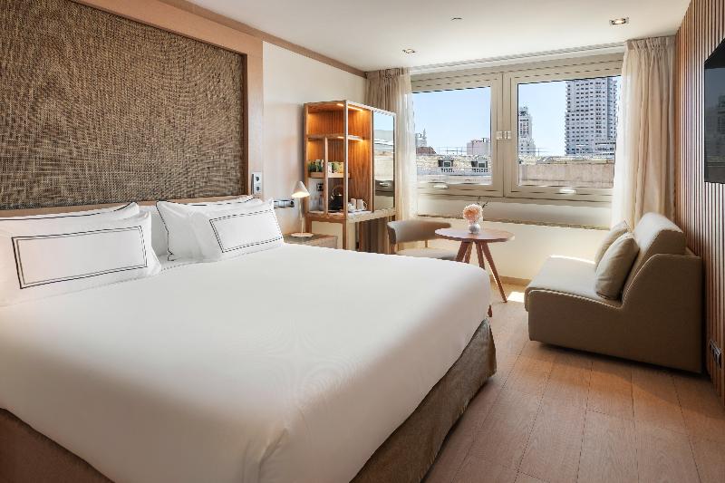Este elegante hotel de primera categoría está situado en uno de los mejores barrios de Madrid, cerca de Plaza de España, del Palacio Real y de la Plaza Mayor. Podrá llegar fácilmente a pie o en transporte público a lugares de interés turísticos, a los monumentos más famosos, a comercios y a lugares de ocio y entretenimiento. También es recomendable visitar las ciudades de Toledo y de El Escorial, que se encuentran a unos 60 km de distancia. Totalmente renovado en el año 2008. Tiene un total 274 habitaciones todas ellas muy luminosas y decoradas en un estilo totalmente actual y acogedor, 11 salones en los que podrá celebrar todo tipo de eventos asesorados por un gran equipo de profesionales. Ofrece a sus huéspedes numerosas comodidades, como un amplio hall de entrada con ascensores, servicio de caja fuerte, cambio de divisa, guardarropa y una recepción abierta las 24 horas del día. Dispone también de una discoteca, una cafetería, una sala de TV, un acogedor bar y un restaurante a la carta climatizado, con zona para no fumadores y tronas (sillas altas para los más pequeños). Los que viajen por motivos de negocio pueden utilizar la sala de conferencias y la conexión a Internet. Como prestaciones adicionales encontrará el servicio de habitaciones, de lavandería y de atención médica. El hotel también tiene aparcamiento y garaje. Amplias y tranquilas habitaciones, todas ellas exteriores y totalmente renovadas. De estilo contemporáneo, están equipadas con camas Dreamax King Size o dos camas twin (bajo petición), así como una amplia mesa de trabajo y un moderno cuarto de baño totalmente equipado. Hay un gran abanico de instalaciones a su disposición. Por ejemplo: piscina cubierta, zona Spa y de cuidado corporal con jacuzzi, sauna, solárium, baño turco y servicio de masajes. Los que estén interesados en el deporte podrán utilizar el gimnasio del hotel. Para redondear tan atractiva gama de instalaciones y de prestaciones, el hotel le ofrece un variado programa de actividades.