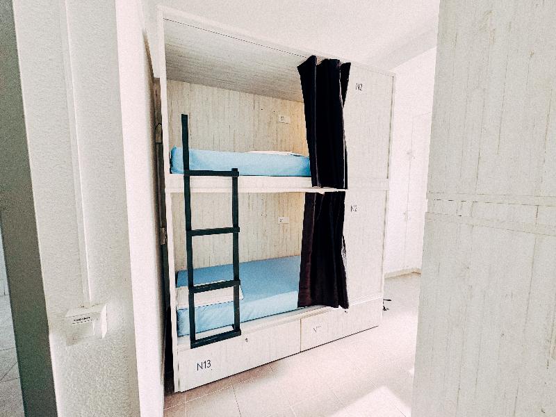 L'auberge de jeunesse propose des chambres pour 2 à 10 personnes avec salles de bains privées, un petit-déjeuner buffet inclus dans le prix et un large éventail d'espaces et de services communs. L'auberge est située juste à côté de l'avenue Gran Via, à 2 minutes à pied de la place Sol, très proche de la Plaza Mayor, Chueca et Malasaña, quelques-uns des quartiers les plus branchés de la ville, et à l'intérieur du quartier Preciados, le quartier commerçant du centre-ville. Toutes les chambres pour 2, 4, 6, 8 et 10 personnes disposent de salles de bains privées, de grandes fenêtres avec vue sur le centre-ville, de la climatisation et du chauffage, de lits en bois de qualité supérieure, de matelas et de linge de lit, ainsi que de casiers individuels. Profitez de nos espaces communs avec une connexion Wi-Fi et des ordinateurs gratuits 24h/24, goûtez à notre sangria et à notre bière typiques au bar, rencontrez de nouvelles personnes dans notre coin salon. Vous pouvez également laver votre linge dans notre buanderie.